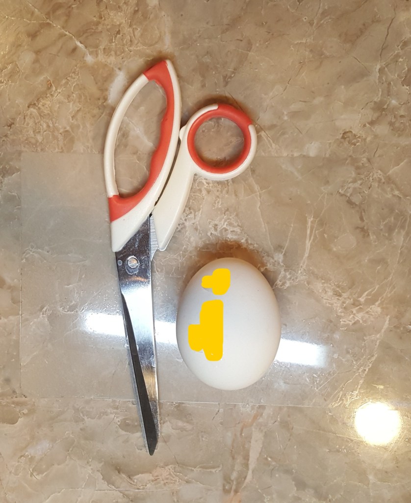 Grab your tape & scissor, & cut out one to two ovals as the reflection on the balloon. Place it on the egg. TIP: Leave some tape to the side, fold that side tape to make it non-stick, now you have an easy way to peel off the tape later.